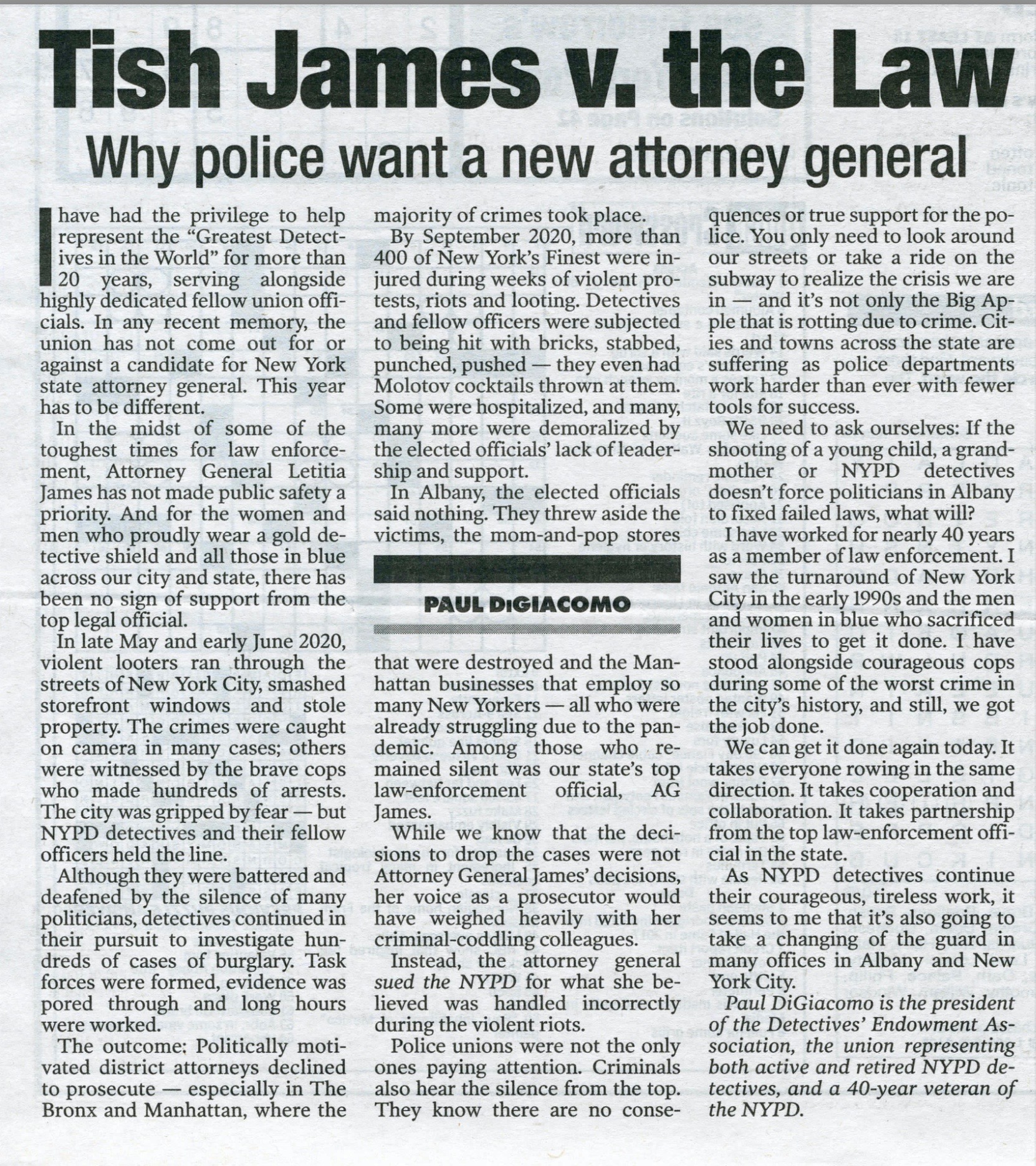 NYPD's Detective's Union Urges New Yorkers to Dump Letitia James [read here]